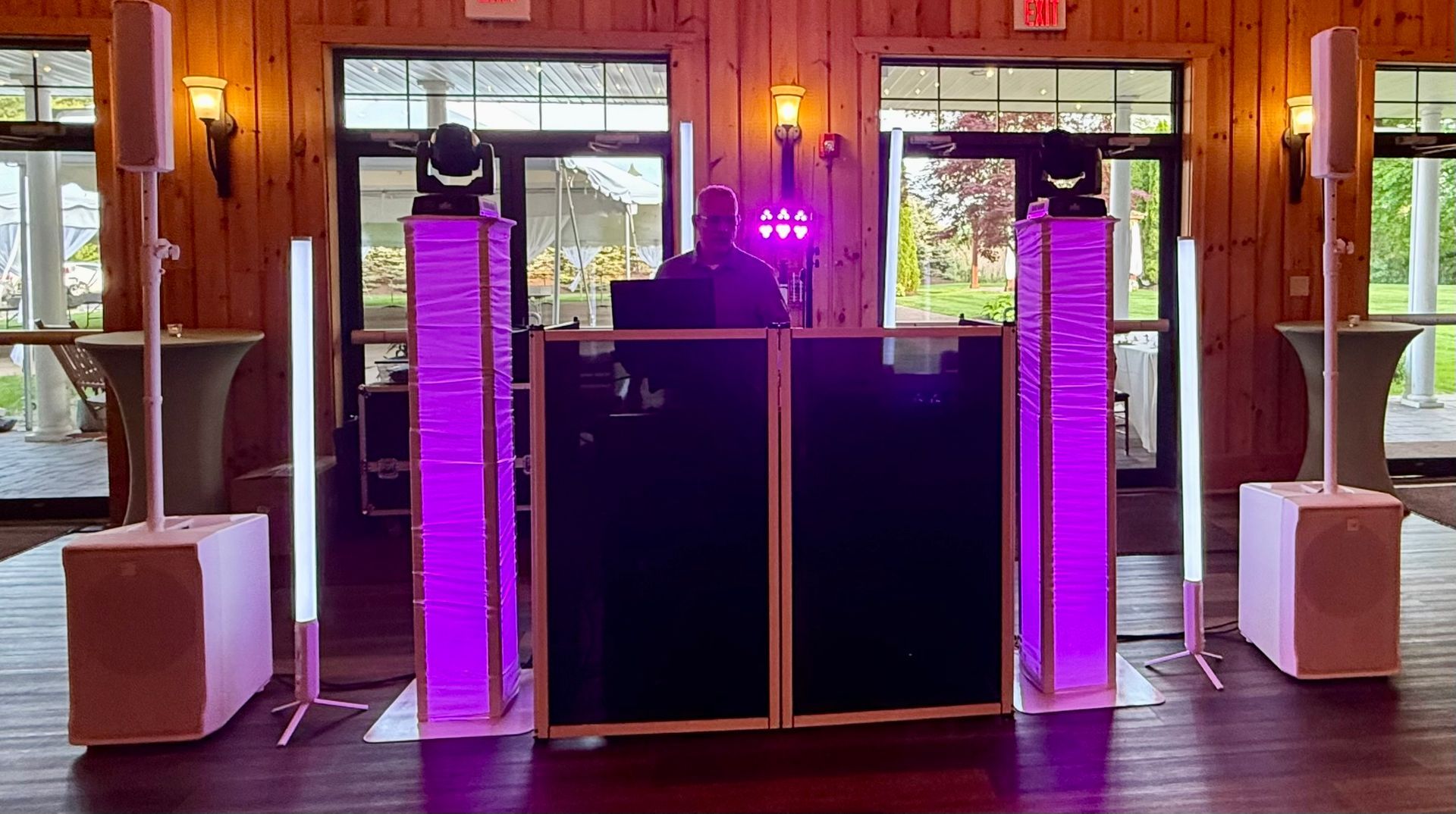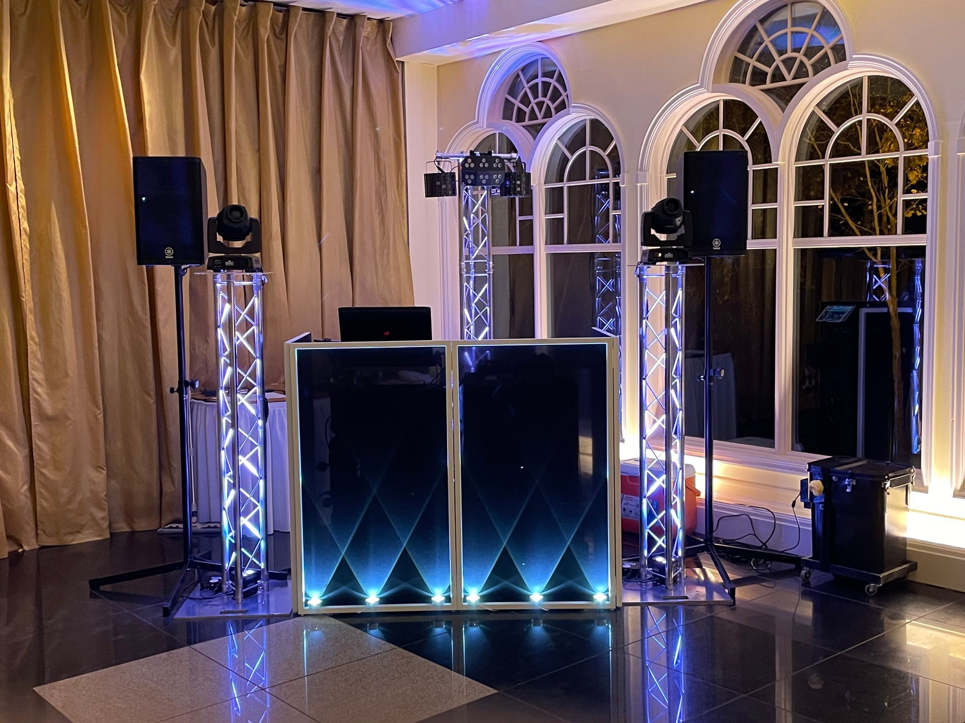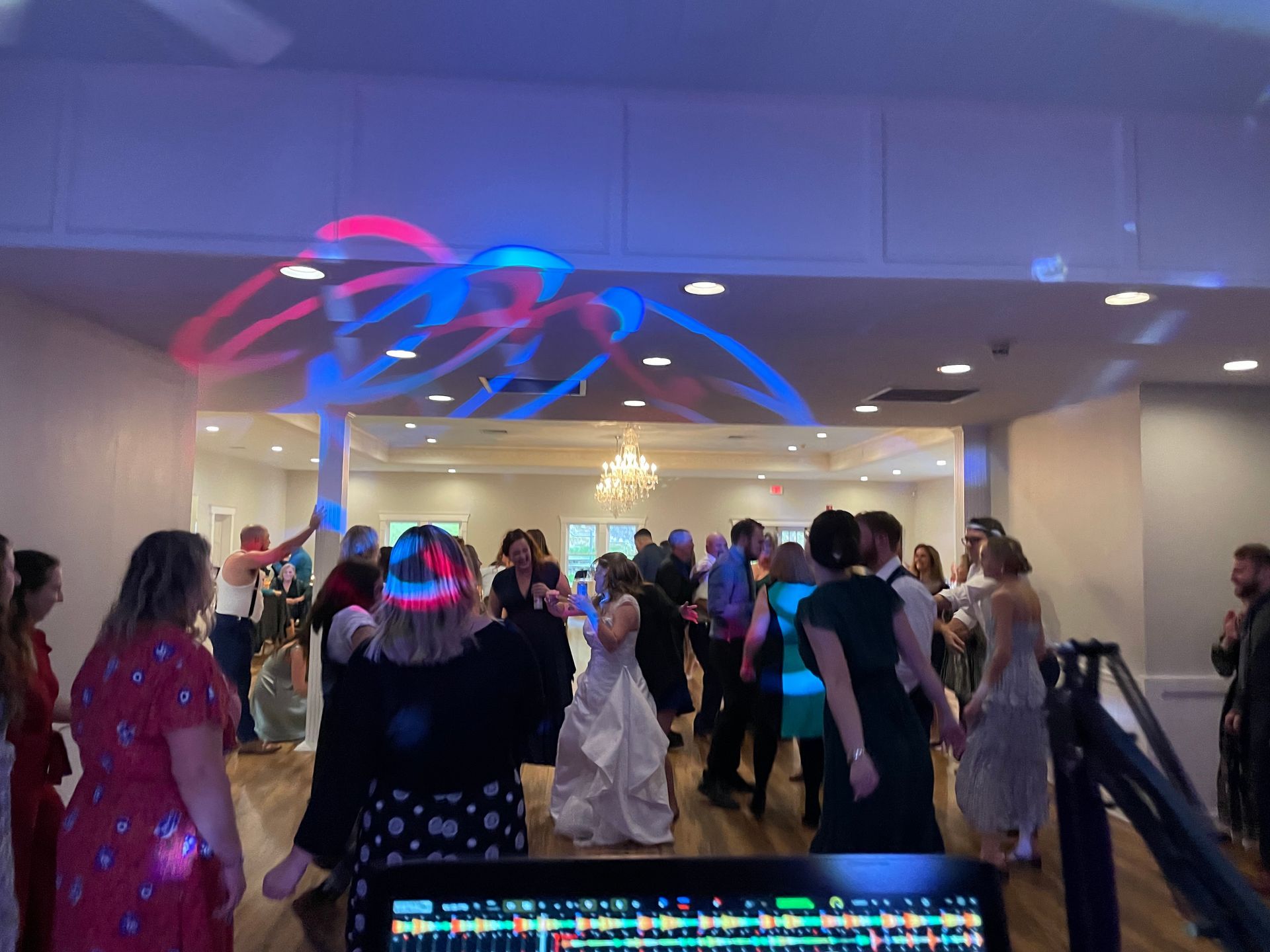 Wedding DJ Setup with intelligent dance lighting at the Candlewood Inn