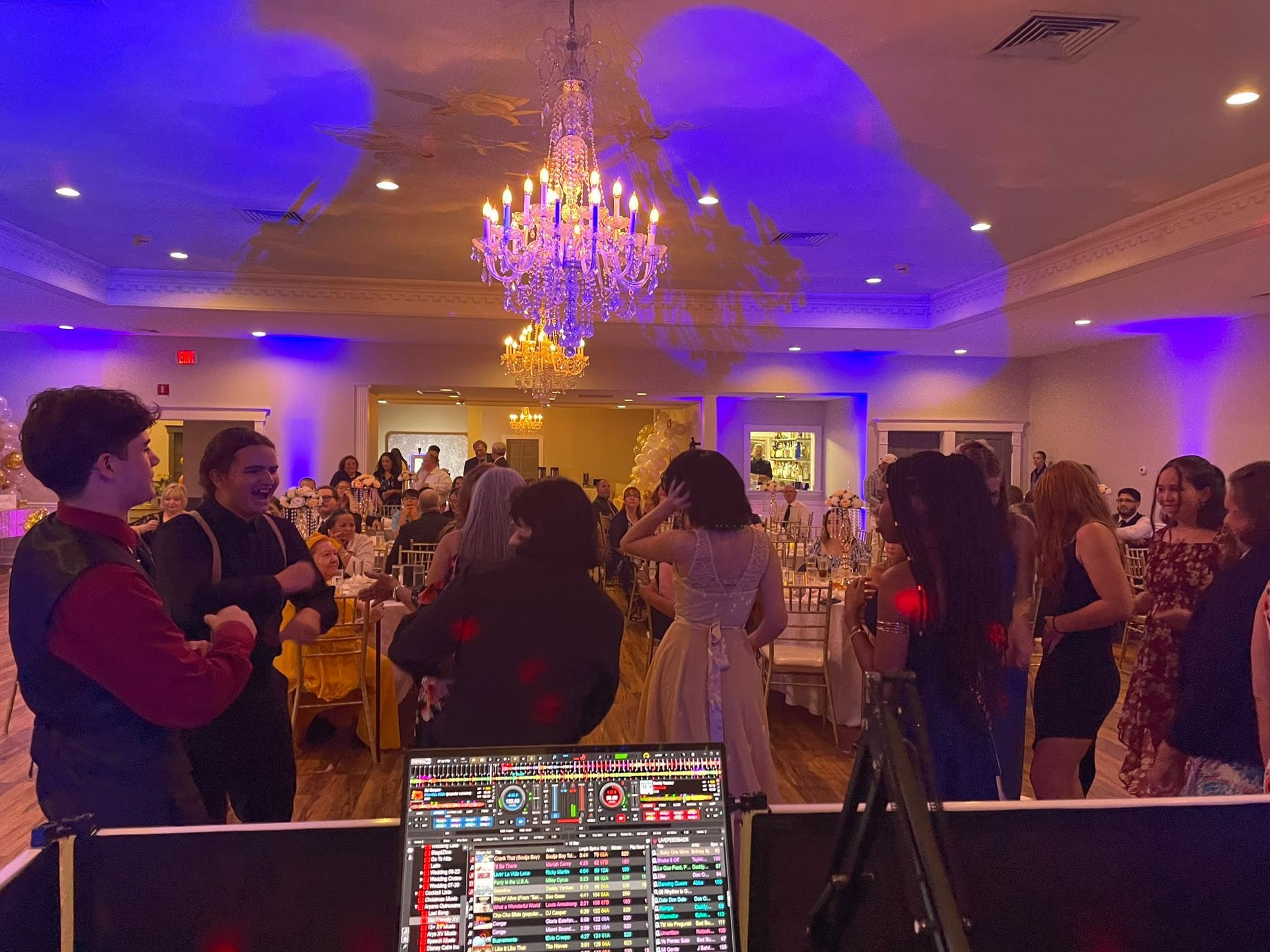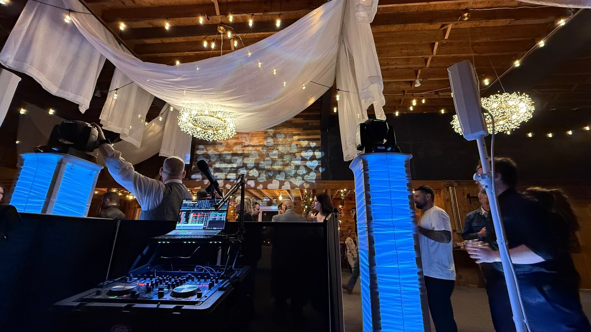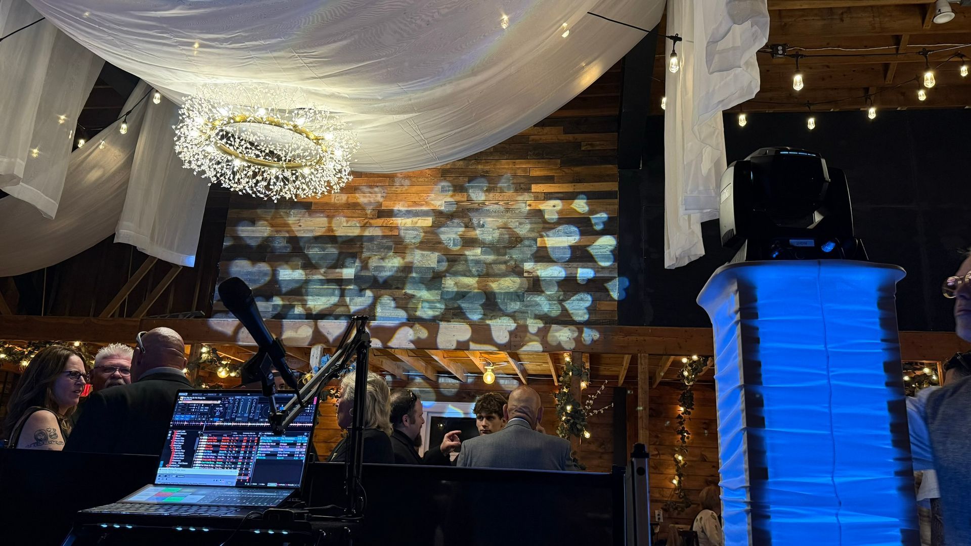 Wedding DJ Setup with intelligent dance lighting at the Candlewood Inn
