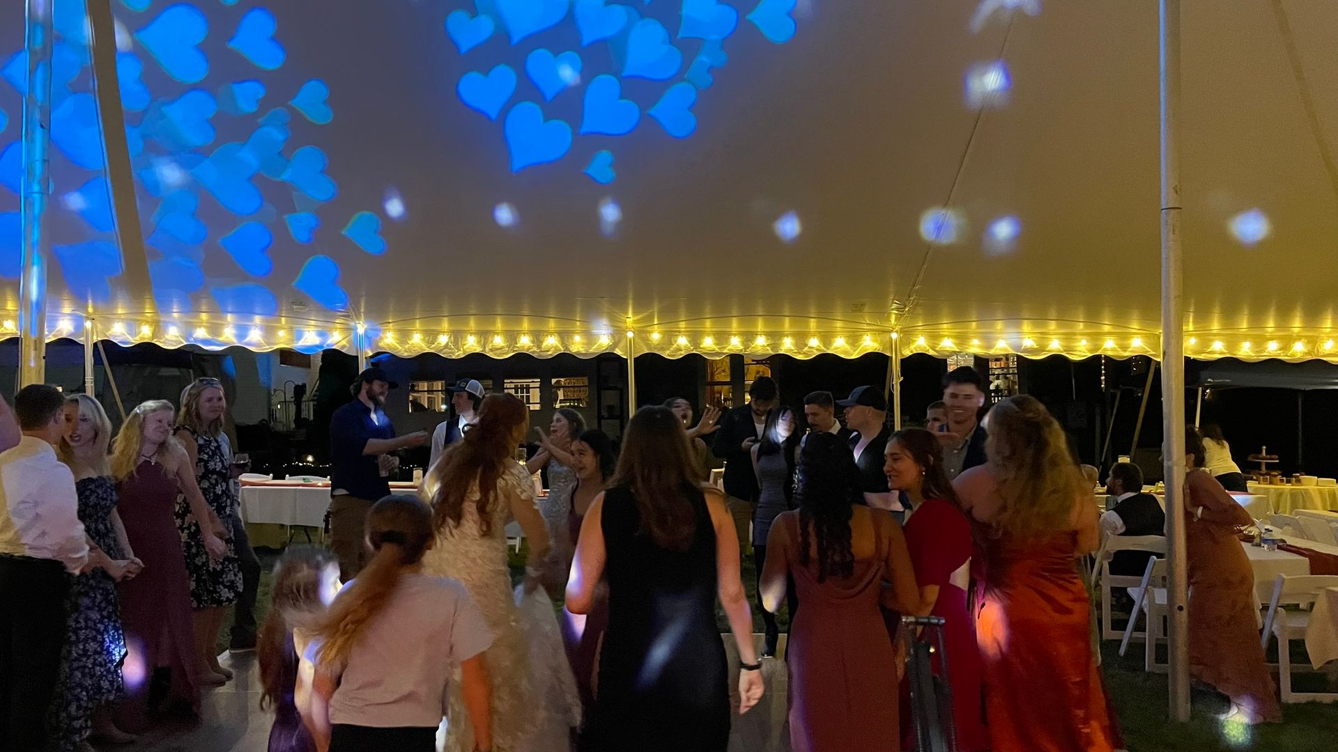 The flexability our Intelligent Lighting provides. Our famous heart out of hears highlight the dance floor for a special wedding.