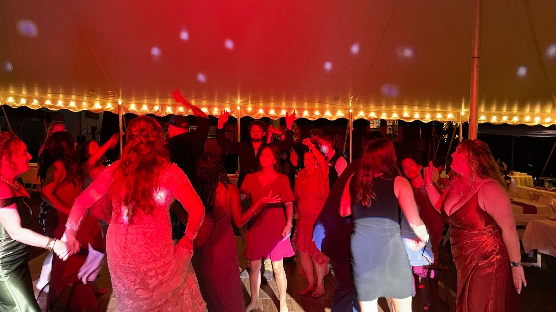 Fun Dance crowd at a wedding at Tunxis Plantation
